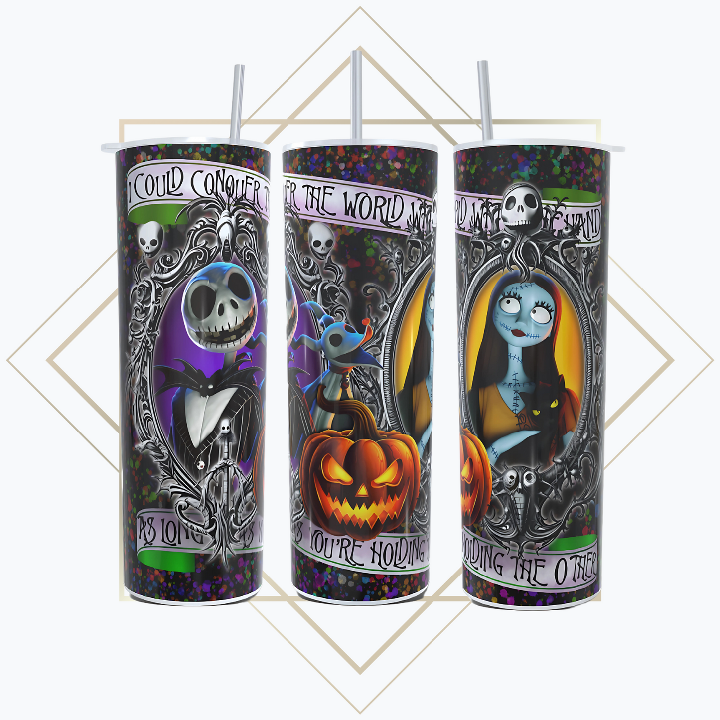 A must have tumbler for any Nightmare Before Christmas fan! Showcasing Jack & Sally in a spooky and romantic design.